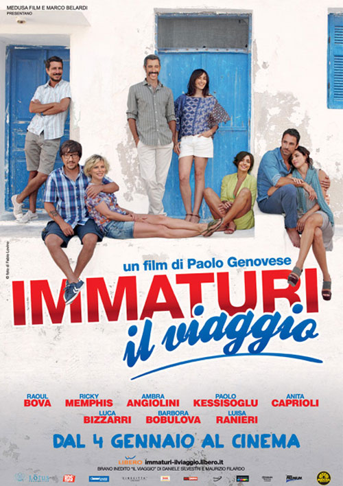 Dopo essersi ritrovati per affrontare gli esami della maturità, i sette protagonisti del film di Paolo Genovese, Immaturi, decidono di organizzare quel famoso viaggio di fine scuola che non erano riusciti a fare ai tempi del liceo. Raoul Bova, Ambra Angiolini, Luca Bizzarri, Ricky Memphis, Barbora Bobulova, Paolo Kessisoglu e Anita Caprioli accompagnati, chi volontariamente e chi no, da mogli, fidanzate, genitori e figli, vivranno nuove avventure e nuovi percorsi di crescita in un’isola della Grecia, rivelando ognuno nuove debolezze, a dimostrazione che la vera ‘maturità’ non si raggiunge mai completamente.
