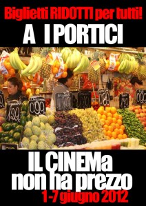 Dopo la Festa del Cineforum, dal 1 al 7 Giugno 2012, il Cinema I Portici offre al suo affezionato pubblico una settimana a tariffe ridotte, per ribadire nello spirito della Festa del Cinema un’attenzione particolare a chi segue la nostra programmazione e un invito a chi volesse conoscerla.