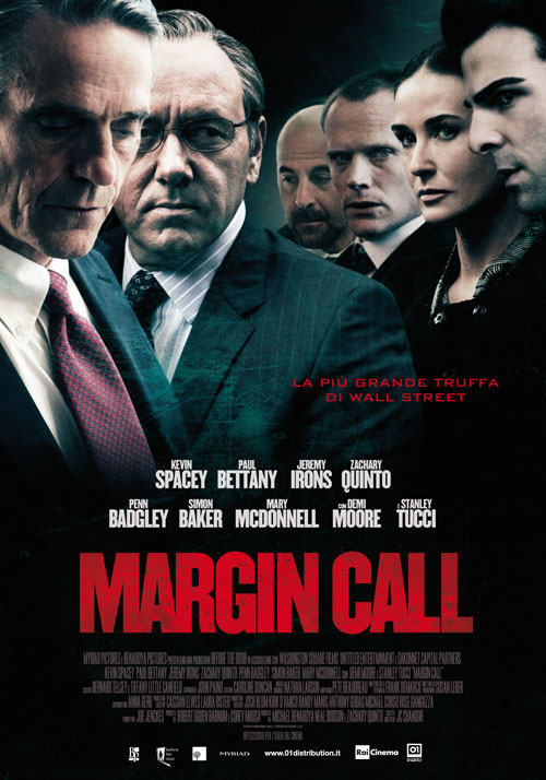 Ambientato nel mondo dell’alta finanza, Margin Call è un thriller che coinvolge gli uomini chiave di una grande banca di investimenti durante le drammatiche 24 ore che precedono la crisi finanziaria del 2008. Quando Peter Sullivan (Zachary Quinto), un semplice analista, entra in possesso di informazioni che potrebbero provocare il fallimento dell’azienda, inizia una frenetica corsa contro il tempo: le decisioni finanziarie e morali in gioco sconvolgeranno la vita delle persone coinvolte spingendole sull’orlo della crisi.